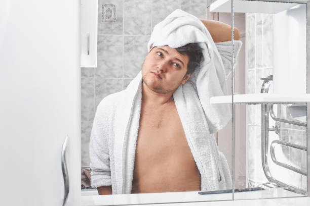 샤워를 마친 후, 습기 낀 욕실 거울 속 나.